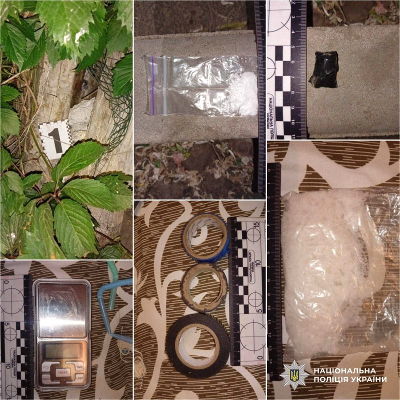 У нього було знайдено вісім пакетиків з кристалічною речовиною, а також ще два з таємних схованок. Експрес-тест підтвердив наявність наркотиків в одному з пакетів.
