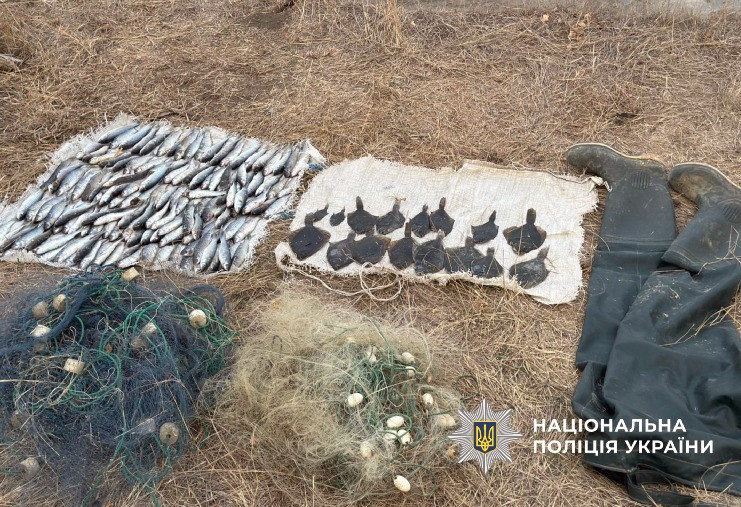 На місці події слідчо-оперативна група вилучила у правопорушника три ліскові сітки загальною довжиною 150 метрів, спеціальний костюм для ловлі та 172 одиниці риби, серед яких кефалі та камбали.