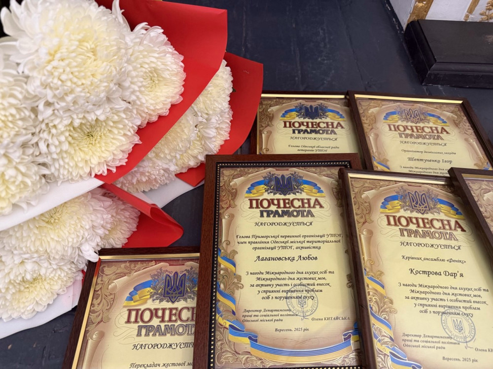 На урочистості були присутні представники Департаменту праці та соціальної політики Одеської міської ради, які вітали всіх учасників та вручили Почесні грамоти найбільш активним членам Українського товариства глухих.
