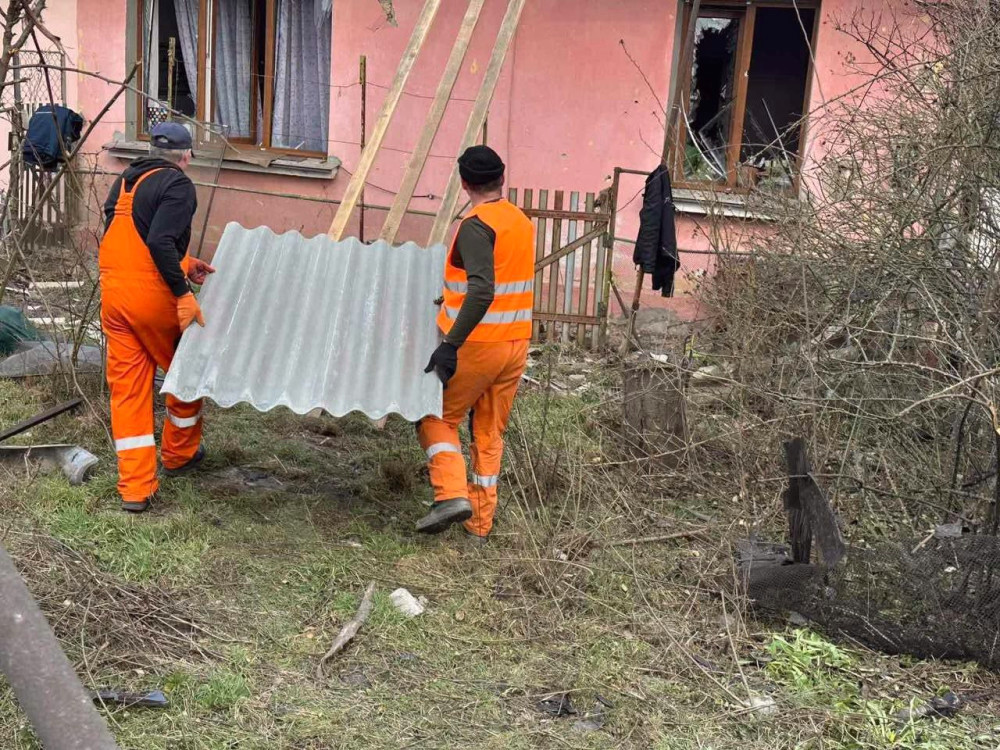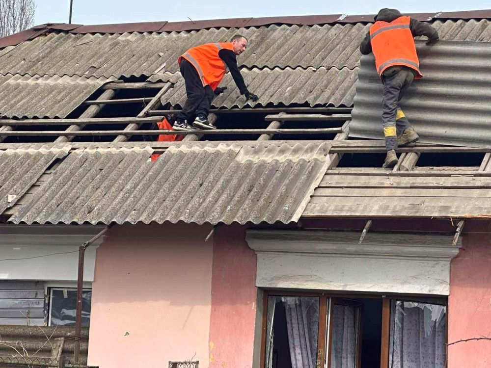 Десять співробітників підприємства працюють над відновленням пошкоджених дахів (45 кв.м) у приватному секторі та закривають вікна плівкою.